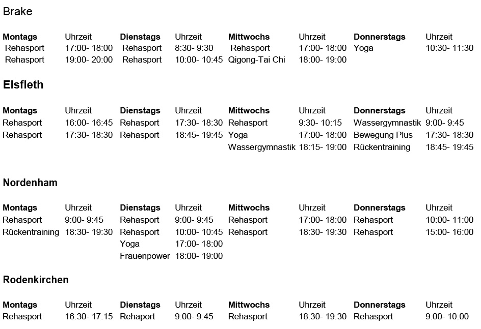 Rund um die Gesundheit, Lebensqualität und Wohlbefinden bieten wir Ihnen ein sehr umfangreiches Programm. Die Gruppen für Gesundheitssport werden von uns in Kooperation mit dem Gesundheits- und Rehasportverein Ovelgönne e. V. durchgeführt.